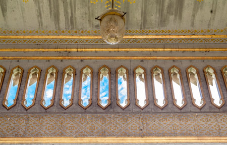 Beautiful arcade in oriental style decorated with floral ornaments in Monastir, Tunisia