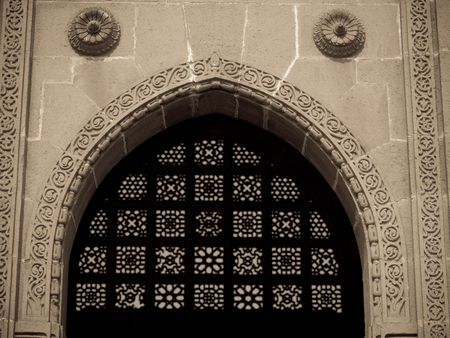 Ornate design on exterior of building in Mumbai India