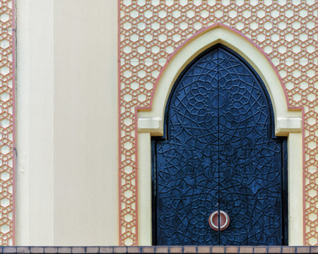 Door detail at Sultan Abdul Samad Mosque or KLIA Mosque is a mosque for Kuala Lumpur International Airport on February 23, 2014 at at Sepang, Selangor, Malaysia. The mosque was originally named as KLIA Mosque and was officially named after Almarhum Sultan