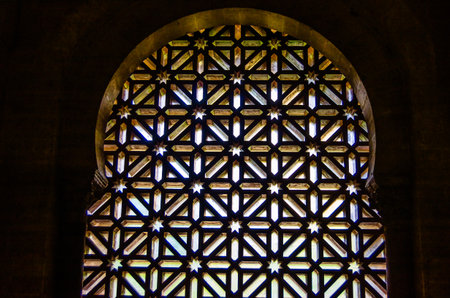 CORDOBA, SPAIN - FEBRUARY 15, 2014: Beautiful colorful stained glass window in the Mosque-Cathedral of Cordoba, Andalusia, southern Spain