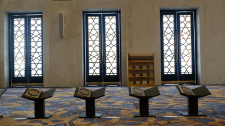 MUSCAT, OMAN - FEBRUARY 22, 2017: Niches containing the Holy Quran in Sultan Qaboos Grand Mosque in Muscat, Oman