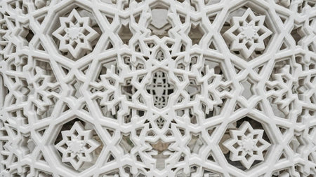 Intricate white stone carvings forming a beautiful geometric pattern