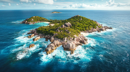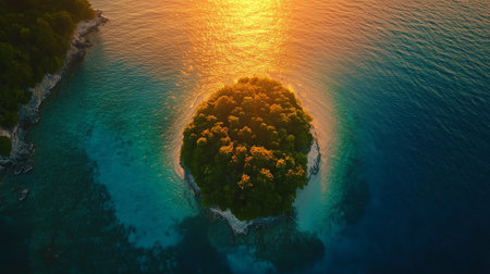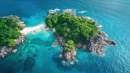 Island Oasis Tranquil Aerial View of Lush Island Surrounded by Azure Water with Turquoise Accents