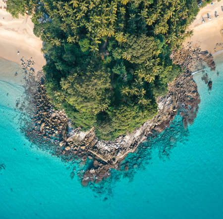 Aerial view. Top view of the peninsula in the middle of the sea, washed by clear turquoise water. Thailand