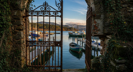 rusty gate leading into mysterious ancient ruins, with long-forgotten secrets waiting to be discovered, created with generative ai