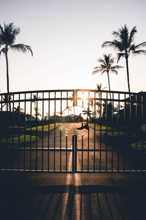 padlock and strong steel chain wrapped around the metal entrance gate for the safety and security purpose