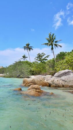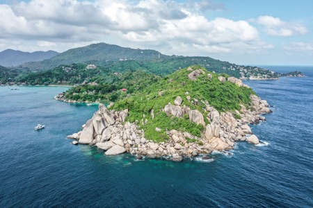 Costline of Koh Tao Islands in Thailand. Granite Rocks and blue lagoon with clear sea water