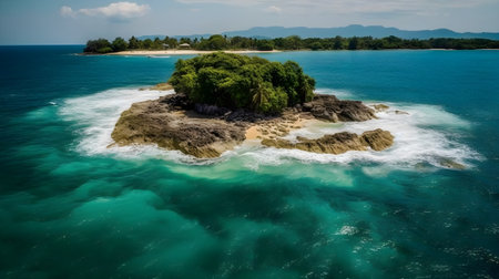 Island Oasis Tranquil Aerial View of Lush Island Surrounded by Azure Water with Turquoise Accents