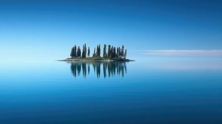 This image showcases a tranquil island with lush greenery surrounded by calm waters, reflecting its beauty under a clear sky, perfect for nature enthusiasts.