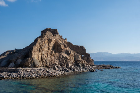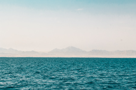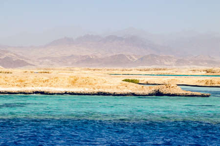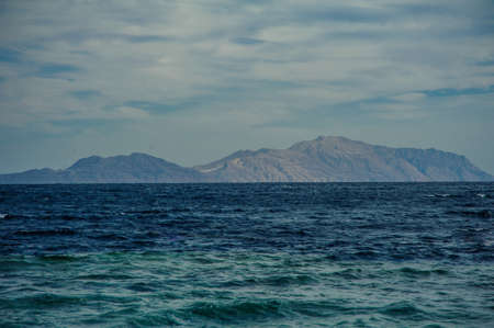 Mountains island Bay Akaba background Red sea and Tiran Kingdom Saudi Arabia, island near Sharm El Sheikh in Egypt
