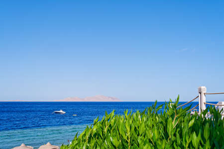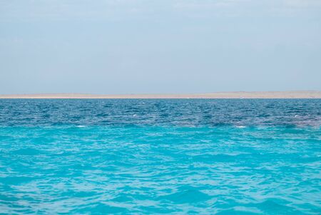 Amazing view horizon line Egypt. panoramic overlook blue sea surface far from coast. Natural background sunny day sky. Template free space wallpaper mockup. Summer background calm marine Red sea