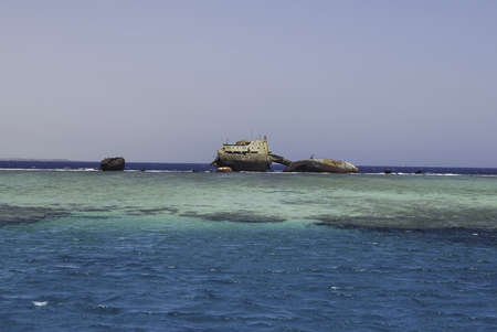 Boat wreck. The remains of the Loullia on the northern edge of Gordon Reef in the Straits of Tiran near Sharm el Sheikh, Egypt.