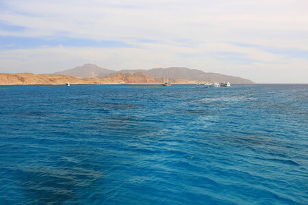 Sinai mountains and picturesque landscapes of the red sea in Egypt. Boat trip on the red sea.