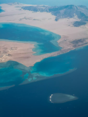 Coast of the Red Sea of Egypt. View from the airplane window.