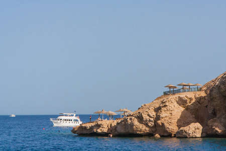 Beautiful landscape of the rocky shore of the Red Sea in Egyptian charm el sheikh