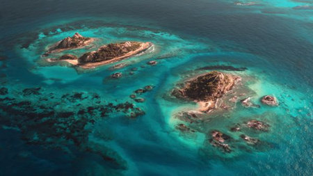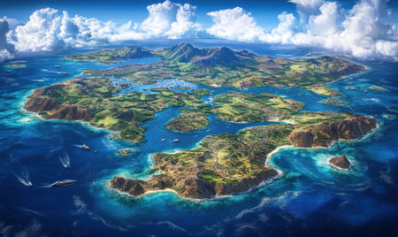 Island Beauty: Captivating Aerial Snapshot of Sea's Enchanting Archipelago