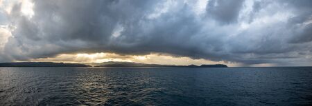 Stormy cloud with rain cloud and ray of light emerge through the large cloud at Koh Kood or Koh Kut, Trad province, Thailand.