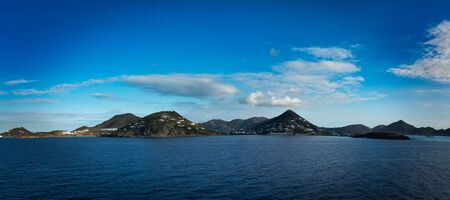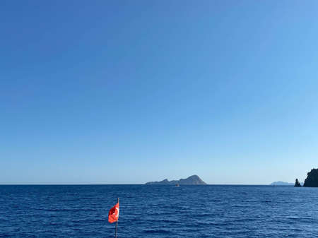 Aeolian islands view from the sea in a cloudy day.