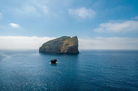 View over Island Foradada from Capo Caccia viewpoint Belvedere Foradada. Sardinia, Italy