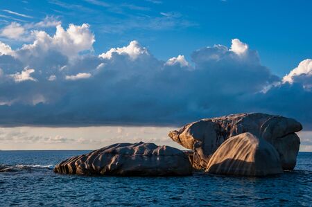 Island in the sea. Beautiful seascape with islands and clouds.