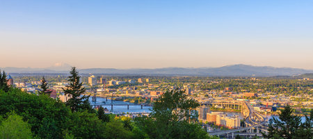 Panorama view of Portland and Marquam Nature Park, Oregon, USA