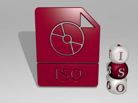 3D illustration of ISO graphics and text around the icon made by metallic dice letters for the related meanings of the concept and presentations. background and certified
