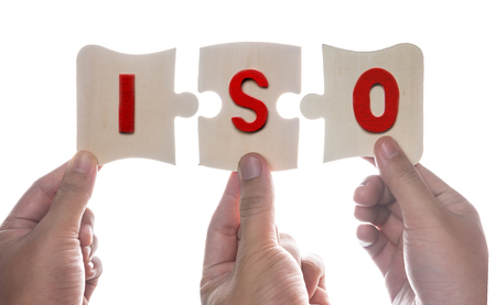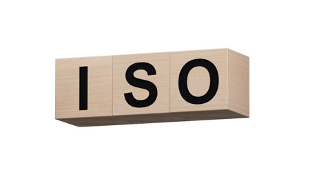 ISO concept image with wooden blocks on a white background. ISO is the main quality assurance ofISO.