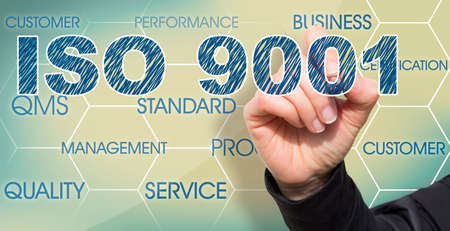 Hand writing ISO 9001 the standard for quality management criteria relevant for all types of organizations