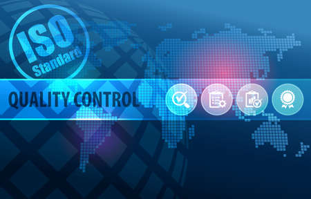 Quality management certification and standardization proces, ISO certified business, conformity to international standards and quality assurance or QA and Quality Control or QC.
