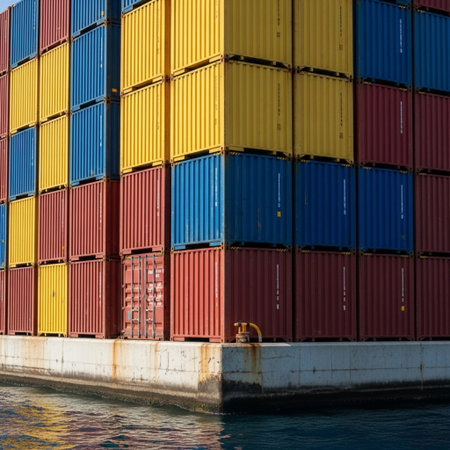 A vibrant array of shipping containers stacked in a modern port highlights the intricacies of industrial logistics and transportation. The colorful arrangement showcases the efficiency and organization vital for managing goods.