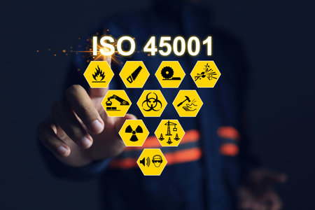 Workplace safety officers point to the ISO 45001 safety standard for workplace safety such as methods, people, machines, materials and the environment. Safety work concept