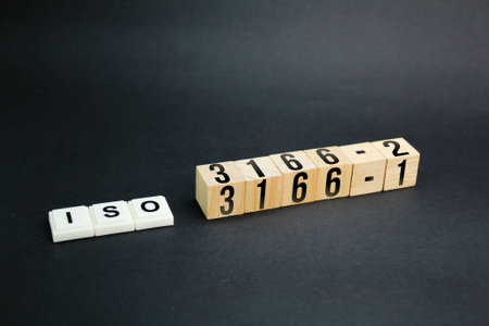 wooden cubes with letters ISO 3166-2 and ISO 3166-1. Codes for the representation of names of countries and their subdivisions