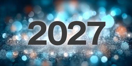 A Stunning Celebration of the New Year 2027 with Sparkling Blue Lights and Joyful Wishes for Success