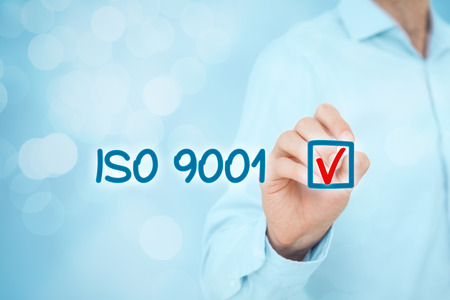 Quality management certification and standardization proces, ISO certified business, conformity to international standards and quality assurance or QA and Quality Control or QC.