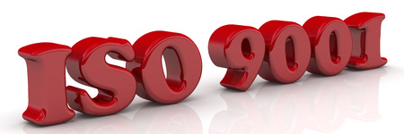 Red text ISO 9001. Red inscription ISO 9001 on a white surface. 3D Illustration
