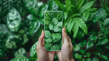 Taking a photo of nature with smart phone in the terrarium.