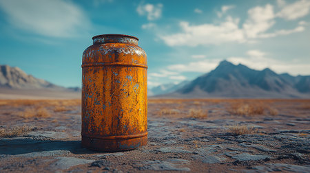 old rusty fuel canister in the desert