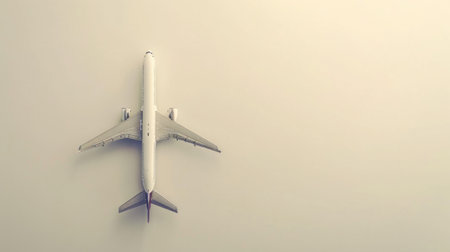 A sleek white airplane model displayed against a light background, emphasizing minimalist design. Perfect for concepts related to travel, aviation, and innovation.