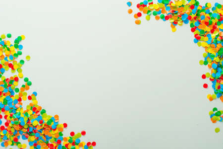 Confetti scattered in different colors on a white background. Festive confetti. The decor for the party.