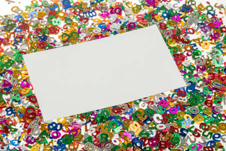 close up of small color numbers confetti and empty card