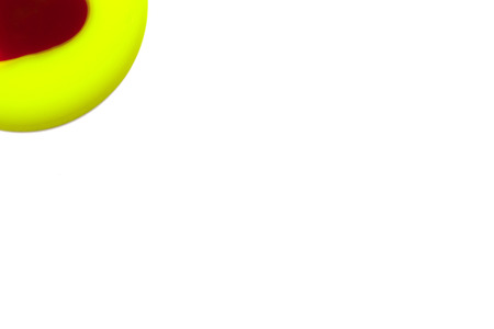Top view of colorful rubber bands isolated on white. Rainbow elastic rubber bands on white. Space for text