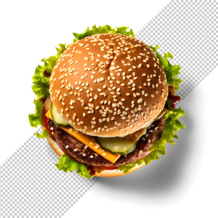 Cheeseburger with Vegetables and Sauce Isolated on Transparent Background