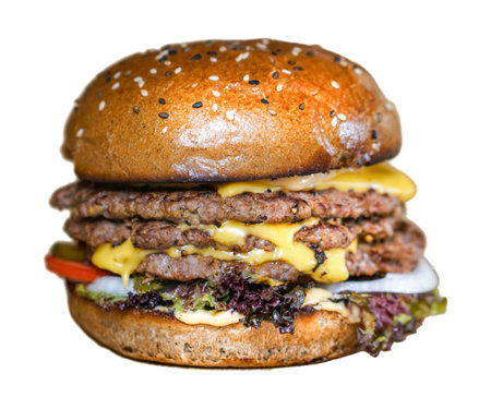 Tasty double hamburger isolated on white background.