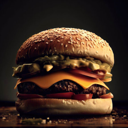 Grilled beef burger with cheese and tomato generated by artificial intelligence