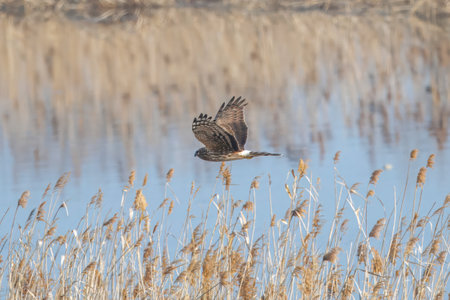 Bird northern harrier flying at the wetlands