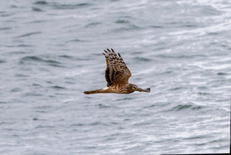 Eastern marsh harrier (Circus spilonotus) flying in japan