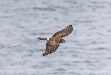 Northern harrier, Circus. hudsonius, single female in flight, British Columbia, Canada, December 2022