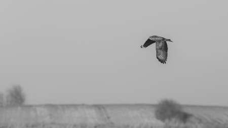 Falcon fly in search of a tasty snack in early spring. Black and white