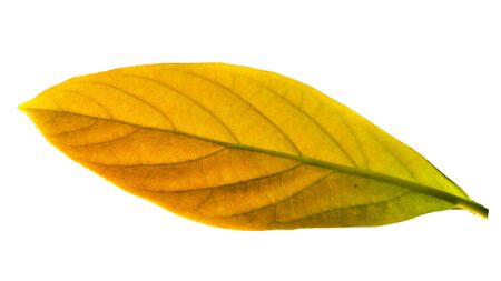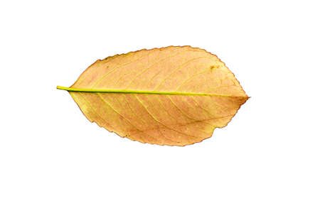 Close-up Photograph of a withering autumnal leaves isolated on white background in high resolution