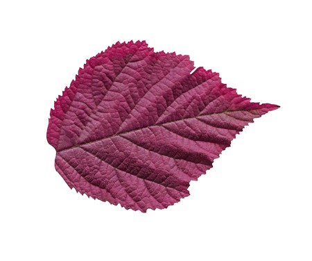 Rubus idaeus or raspberry autumn leaf isolated on white. Raspberry autumn leaf. Fall leaf of raspberry.